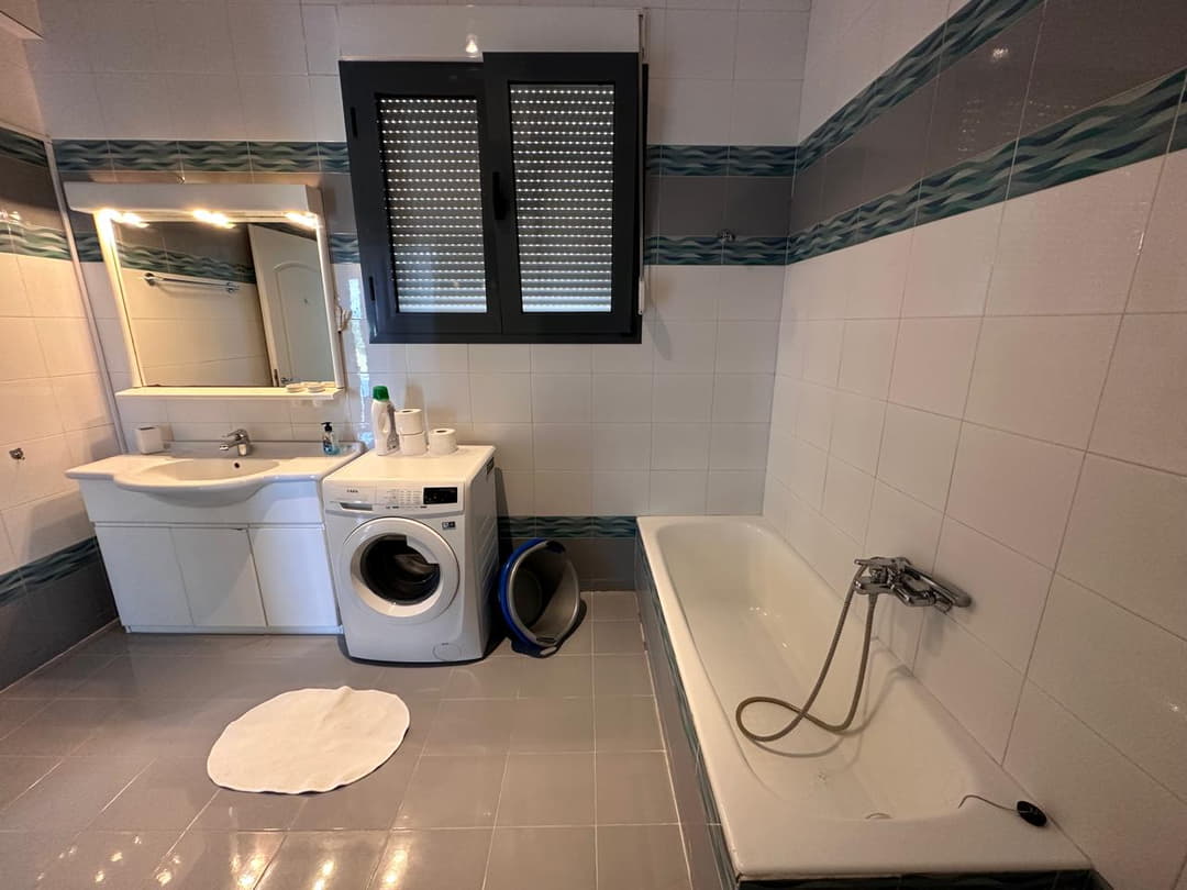 - Washing machine, bed linen, and towels provided.