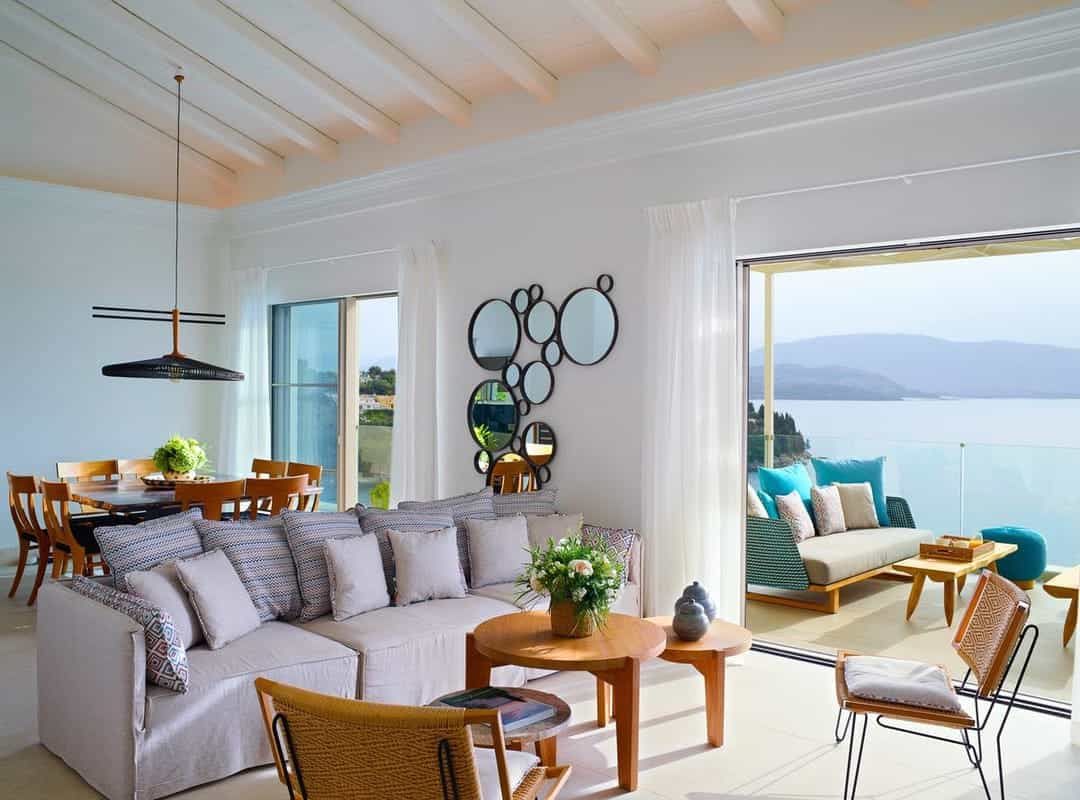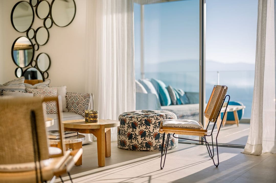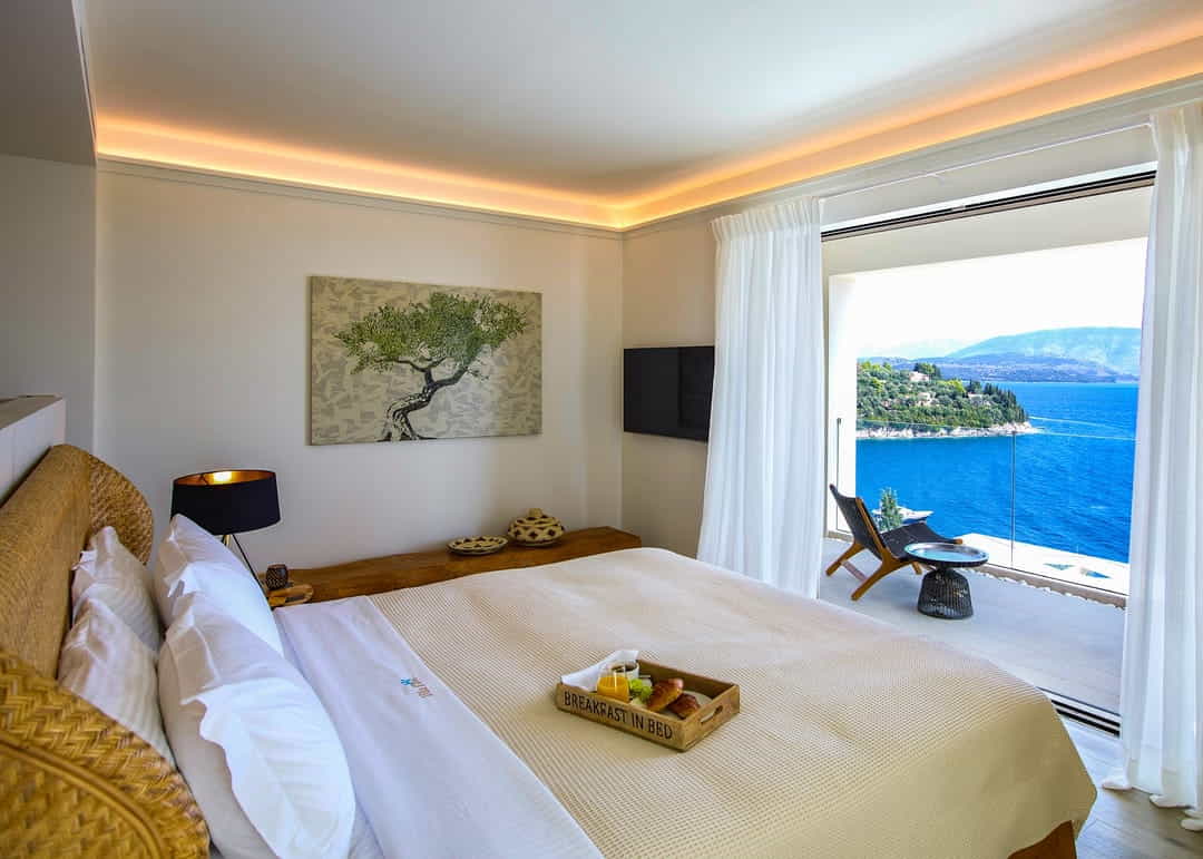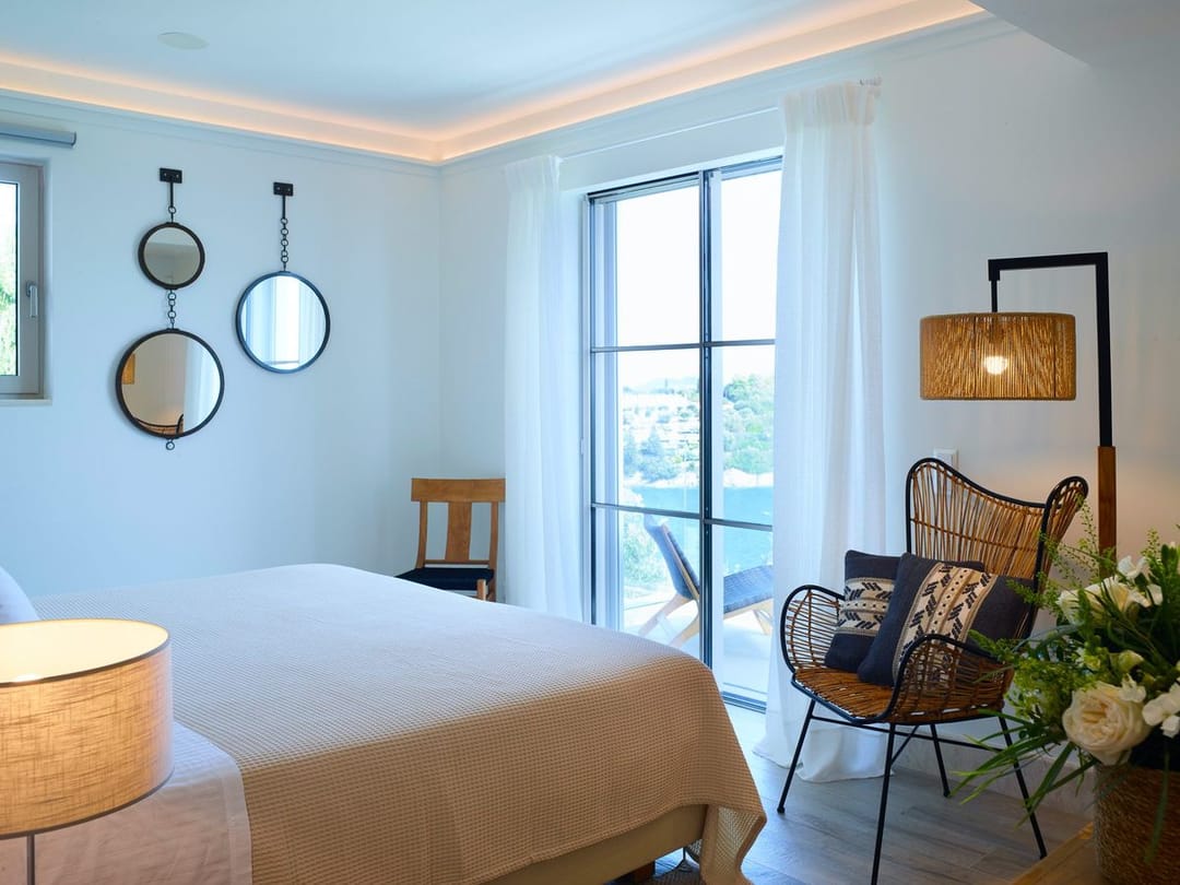 Villa Sola features five bedrooms with en-suite bathrooms, each overlooking the vast expanse of the Ionian Sea. From dawn to dusk, every moment reveals a new, picturesque frame of the surrounding landscape.