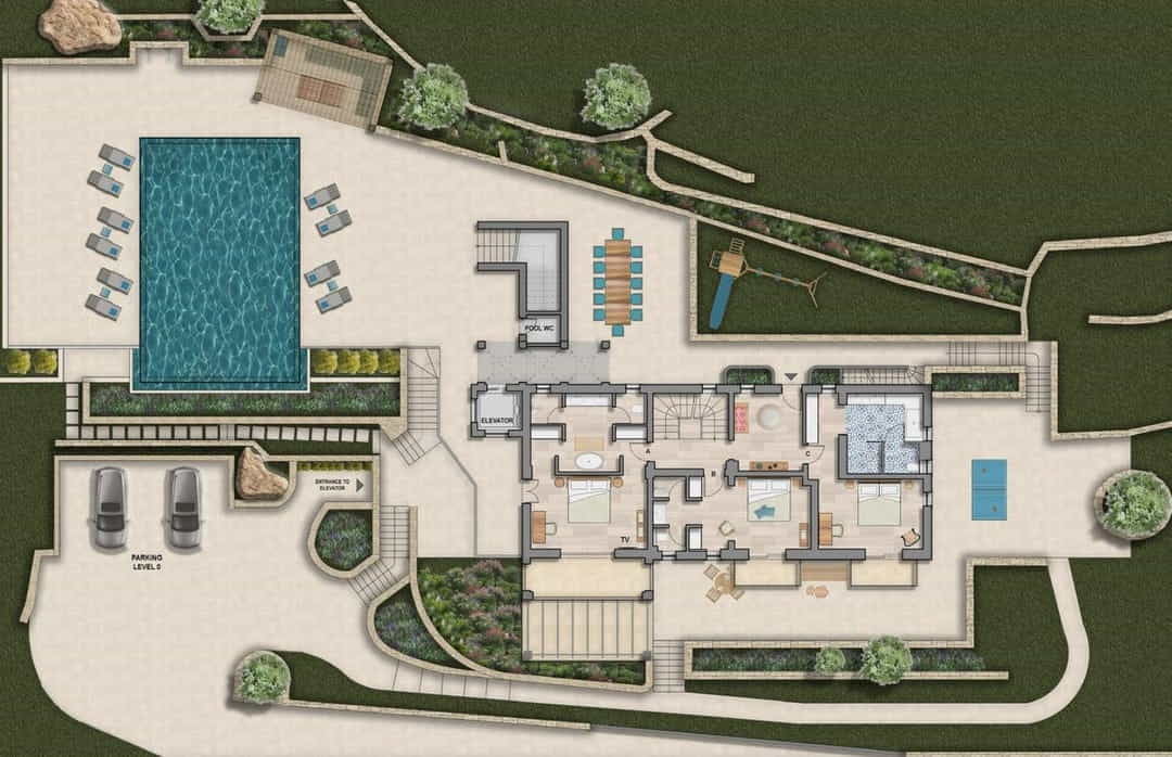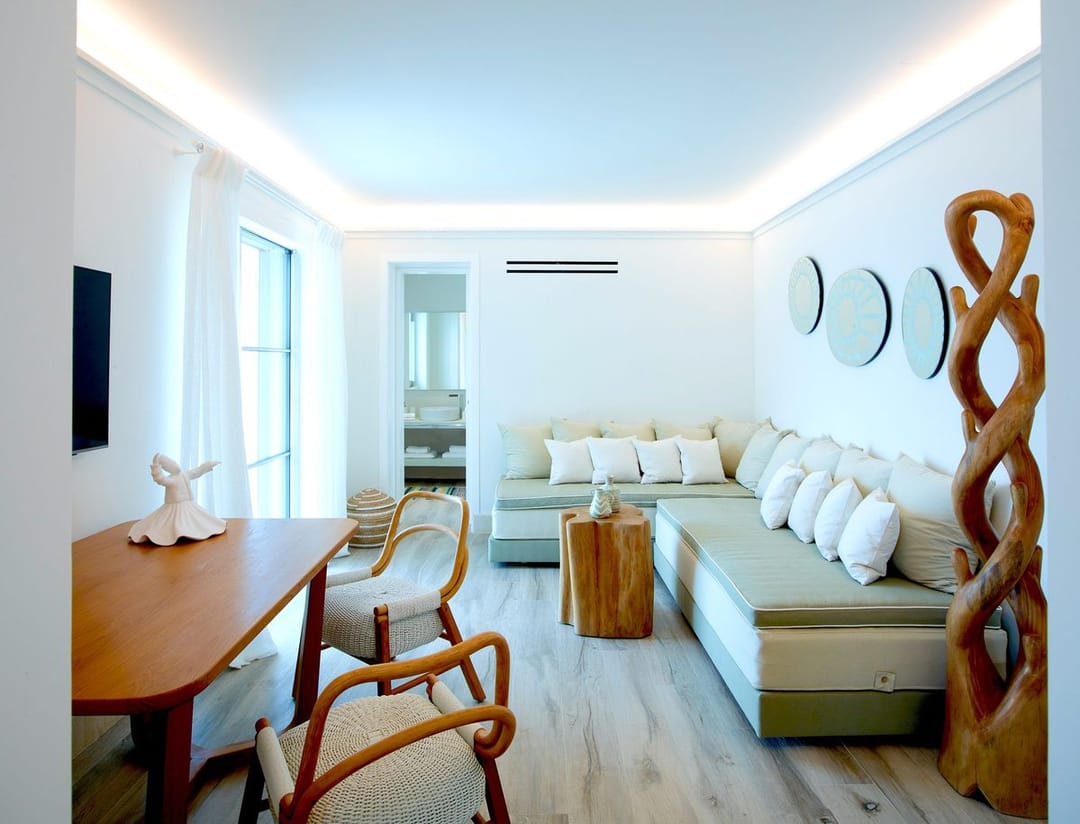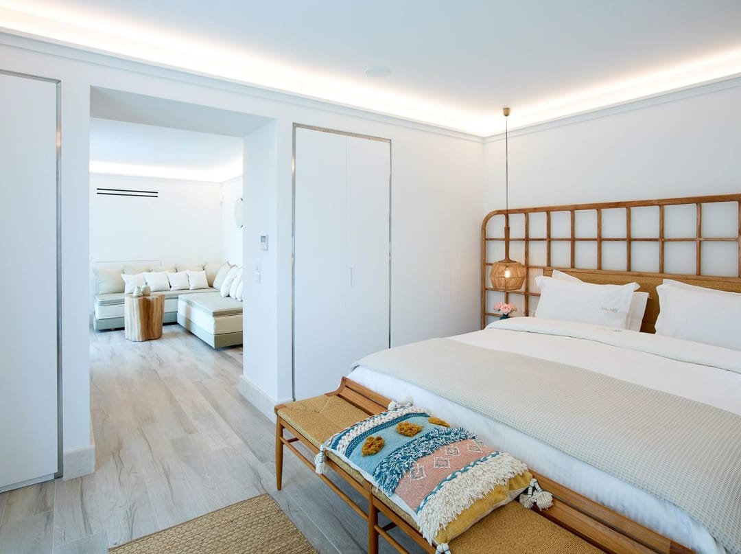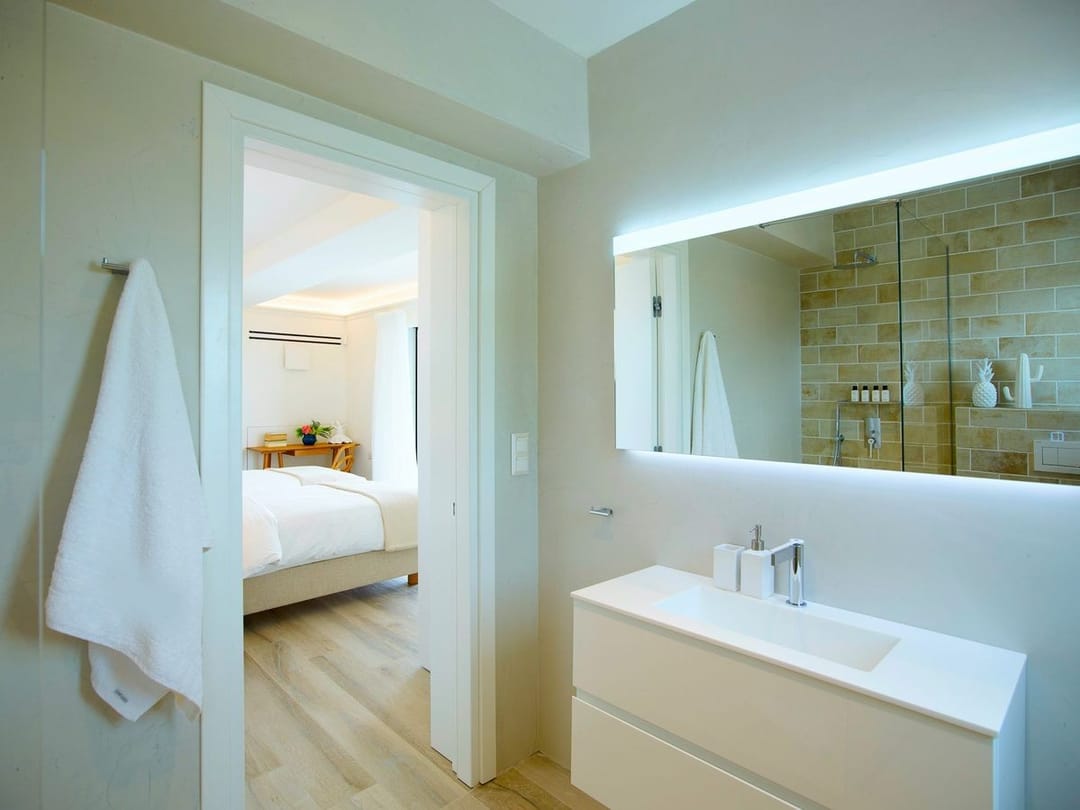 Villa Sola features five bedrooms with en-suite bathrooms, each overlooking the vast expanse of the Ionian Sea. From dawn to dusk, every moment reveals a new, picturesque frame of the surrounding landscape.