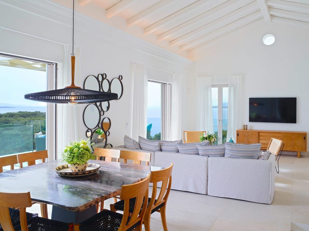 Situated in an enviable elevated position, the villa boasts sweeping panoramic views of the Ionian Sea, offering guests breathtaking sunrises and sunsets while ensuring complete privacy. The property is finished to an exceptionally high standard, with uninterrupted sea views from every room. Inside, the atmosphere is serene and inviting, enhanced by a gentle breeze flowing through the open-plan spaces. The villa’s warm and calming ambience makes it ideal for relaxation.