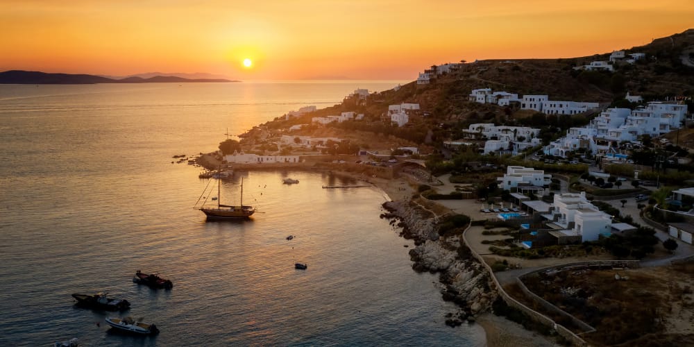 - Закат на южном побережье Миконоса