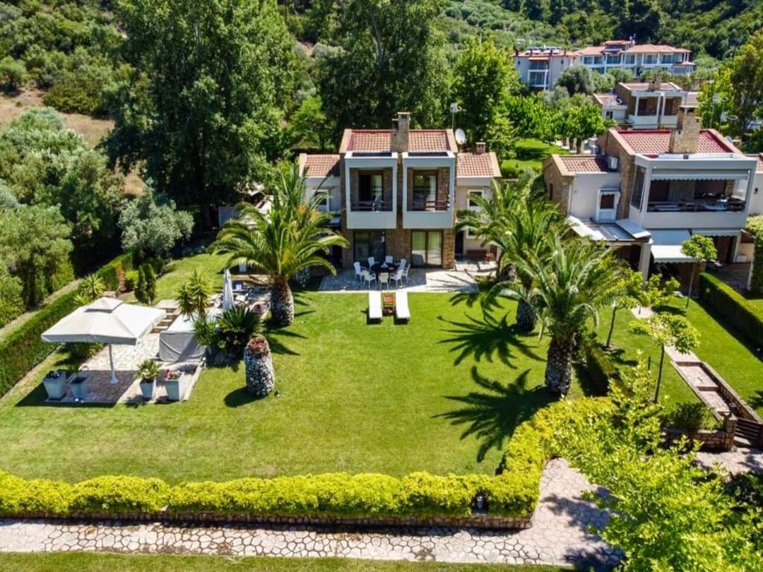 Мы выбрали виллу Флора, которая находится в комплексе с закрытой территорией, со своим пляжем и доступностью к нему в 50 метров. Мы пробыли там месяц и ни разу не пожалели. Для отдыха с детьми прекрасный вариант, есть все необходимое. Огромная ухоженная зеленая территория по всему комплексу. Плюсом было то, что нас разместили с нашим домашним питомцем без проблем, а именно с собакой. Конечно вилла не супер современная, но греческий шарм прослеживается в оформлении и дизайне, то что нам хотелось.