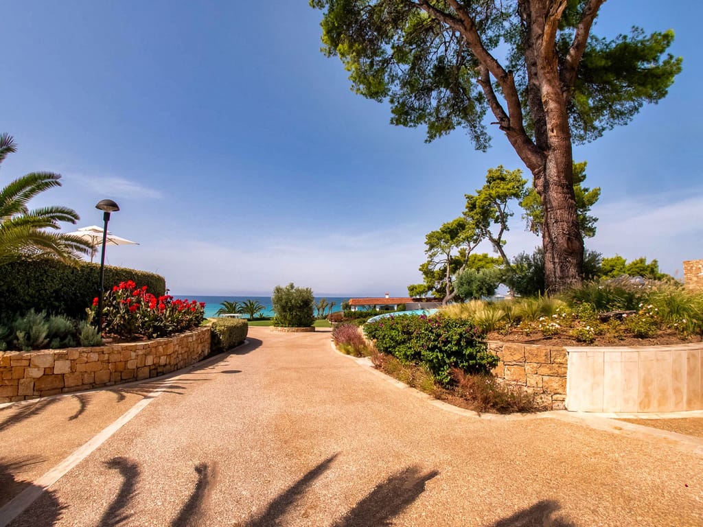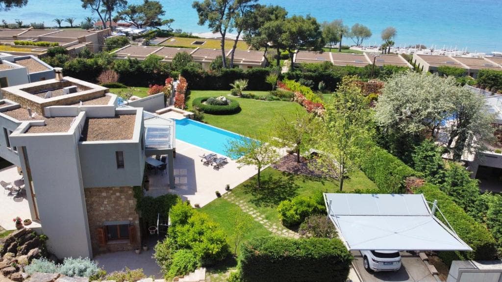 Вилла расположена в комплексе частных вилл непосредственно за виллами отеля Sani Club (отелю не принадлежит). Благодаря уникальному расположению, гости виллы могут пользоваться услугами комплекса Sani Resort (за дополнительную плату) и при этом наслаждаться приватностью проживания в собственной вилле.