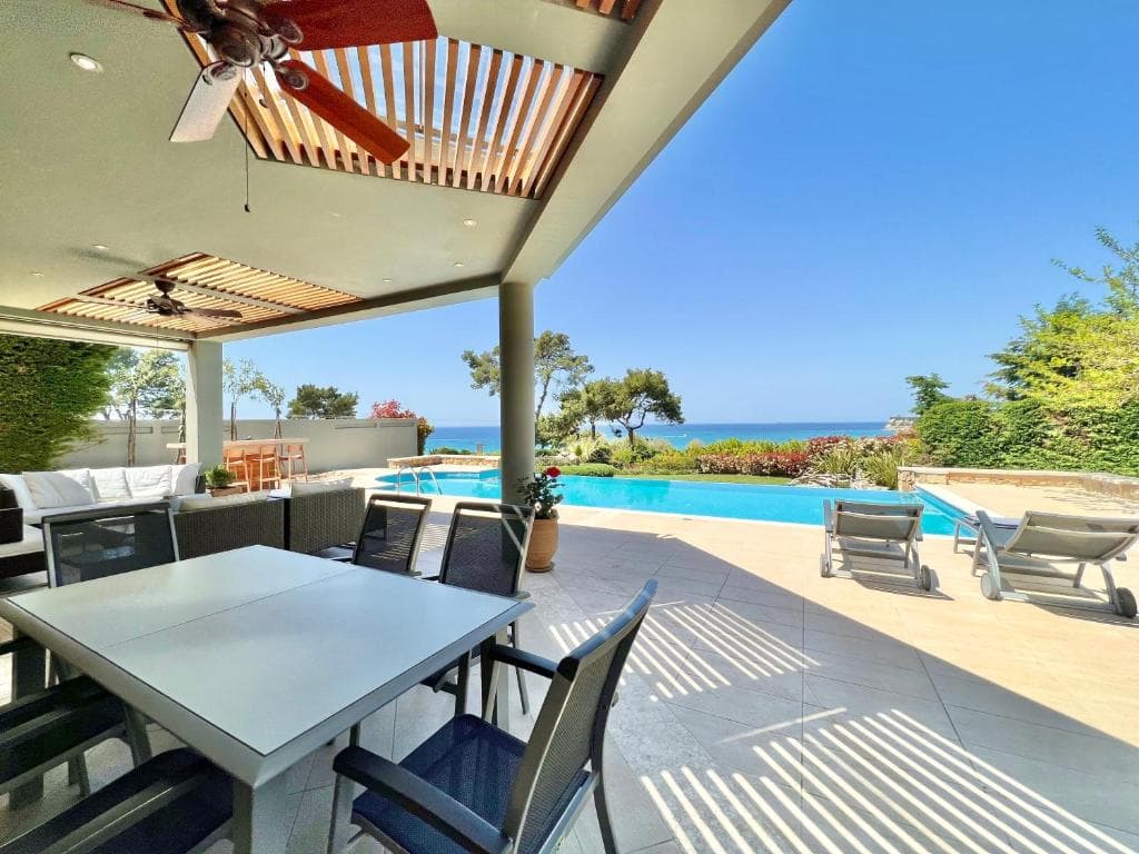 Просторная элегантная вилла «Кристал» с 5 спальнями и частным бассейном, расположенная в 150 метрах от песчаного пляжа, в районе Сани на полуострове Кассандра, Халкидики, в аренду. Вилла располагает солнечной террасой с шезлонгами, барной стойкой и местом для барбекю, ухоженным садом, а также потрясающим видом на Эгейское море.