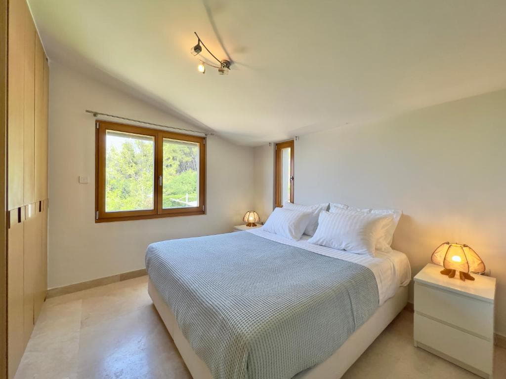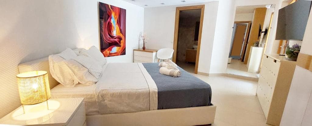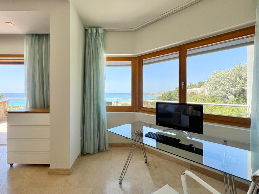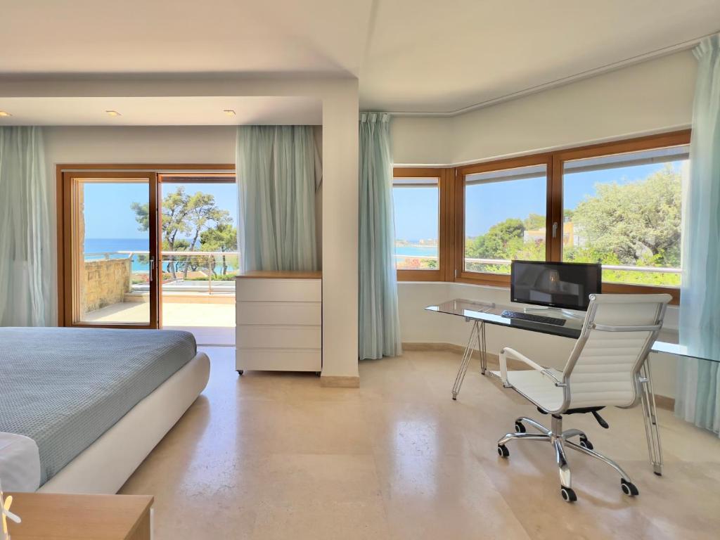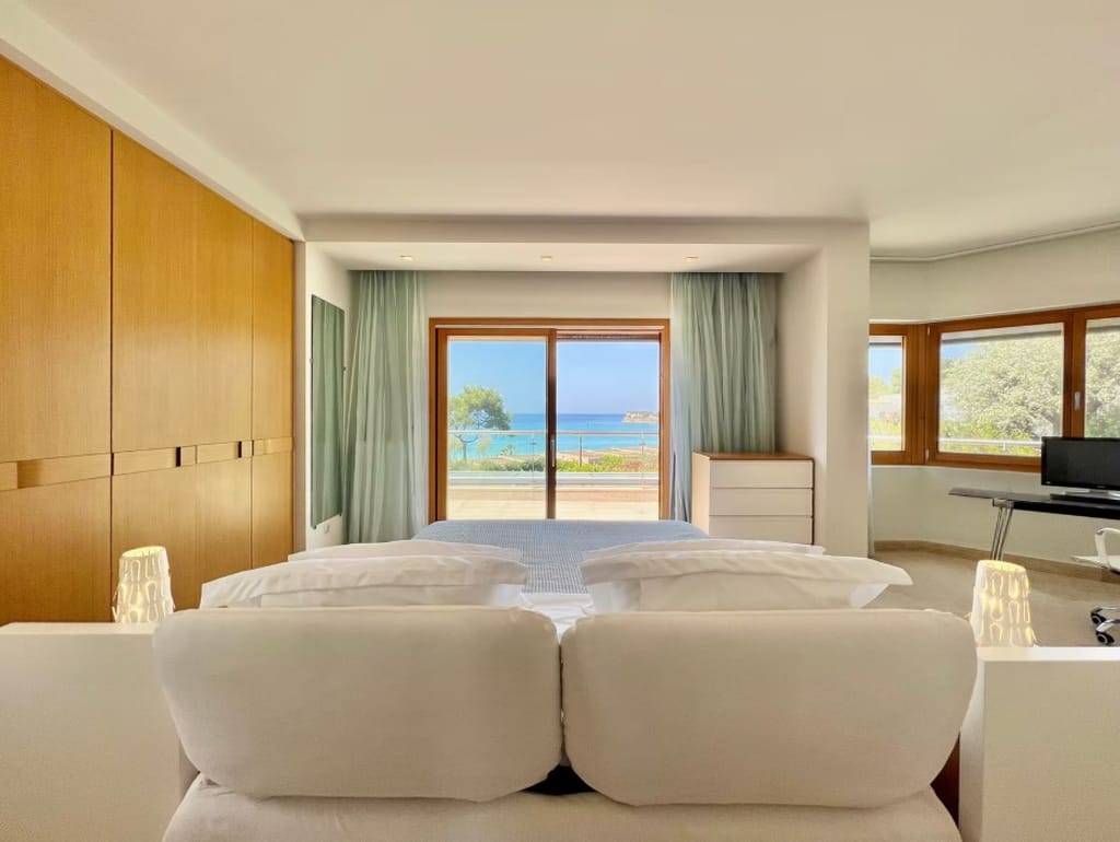 - 4-я спальня с двуспальной кроватью, собственной ванной комнатой, мягкой мебелью, ТВ, письменным столом и балконом с видом на море