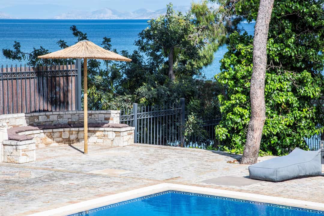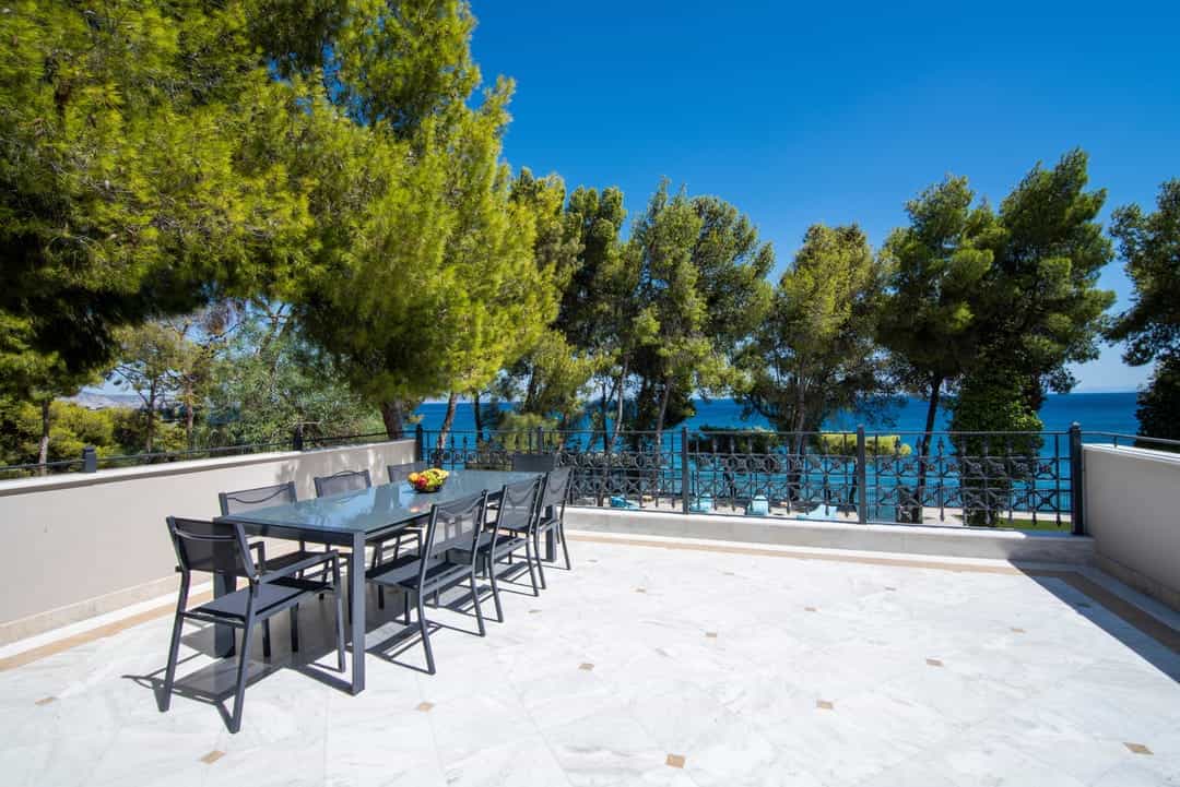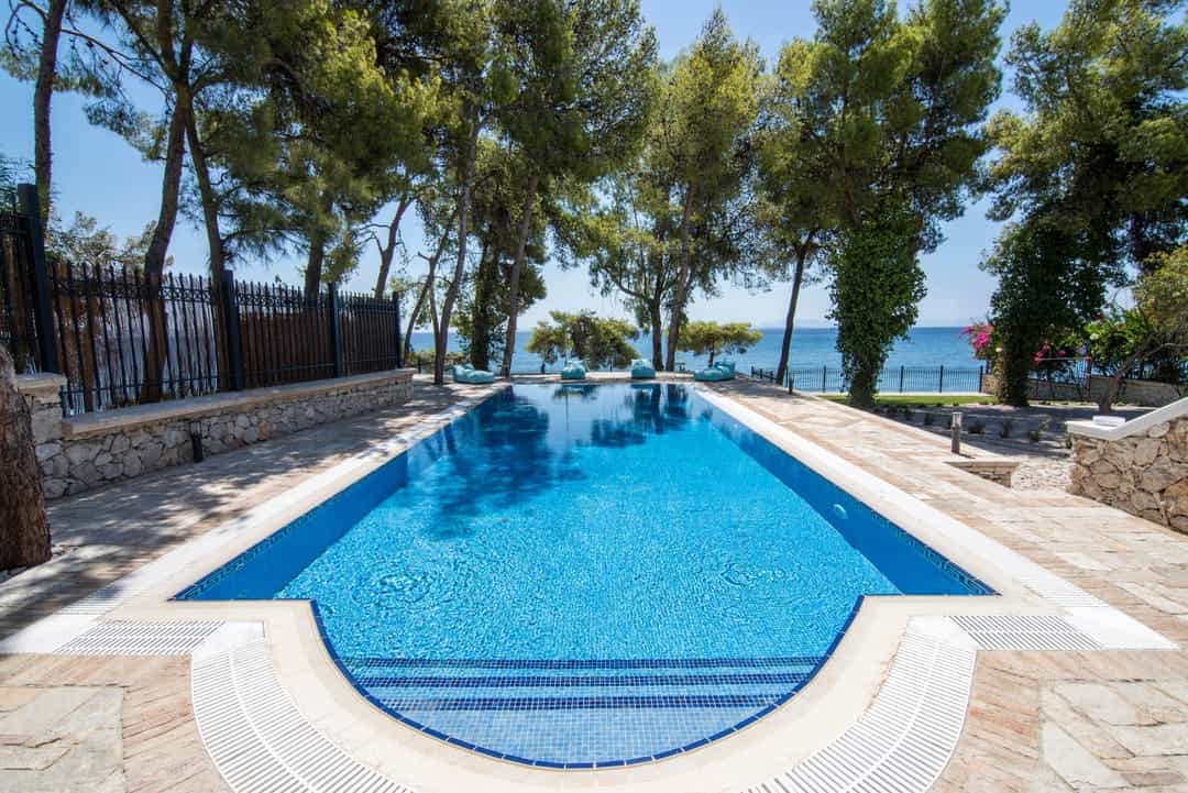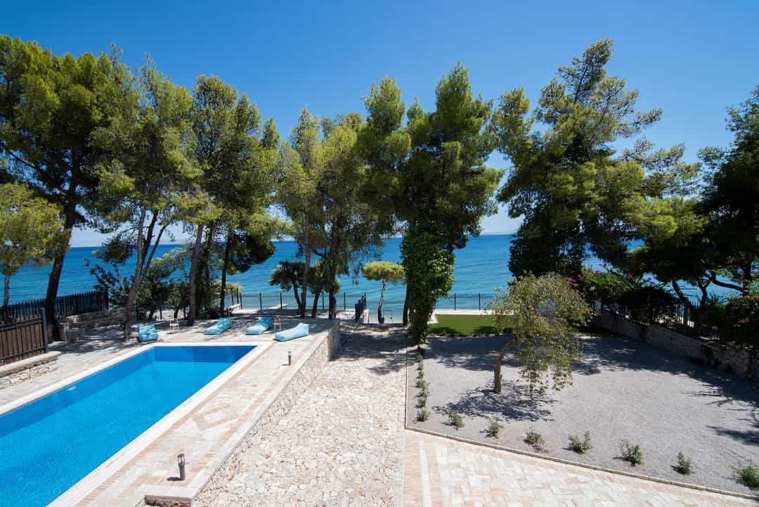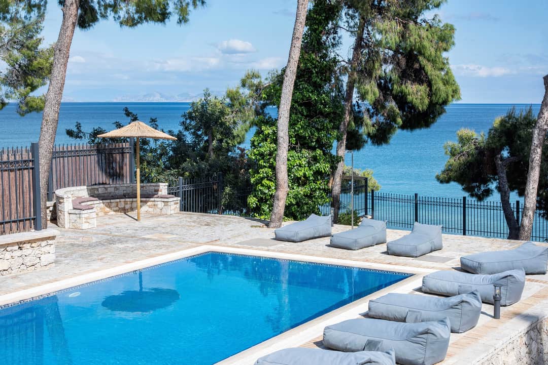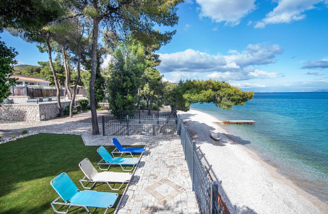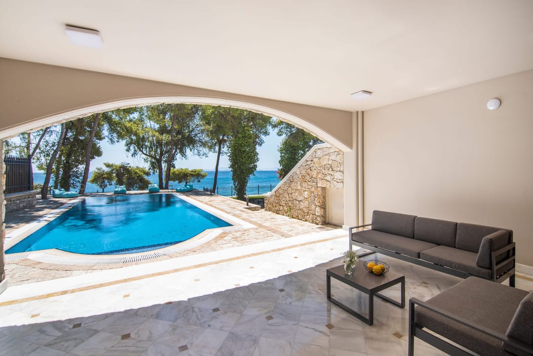 Эксклюзивная, просторная вилла «Симбо» с 7 спальнями и частным бассейном, расположенная на самом берегу моря, в районе Агии Теодори, в 25 км от центра города Лутраки, и в 60 км от Афин, в аренду.
