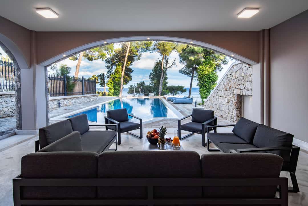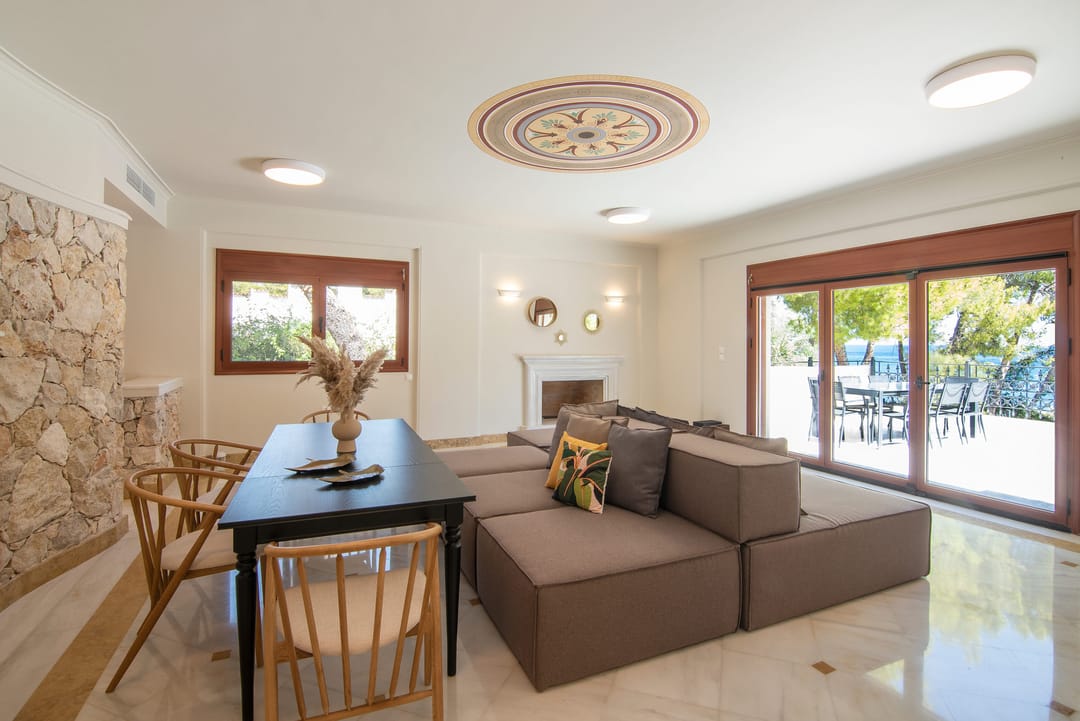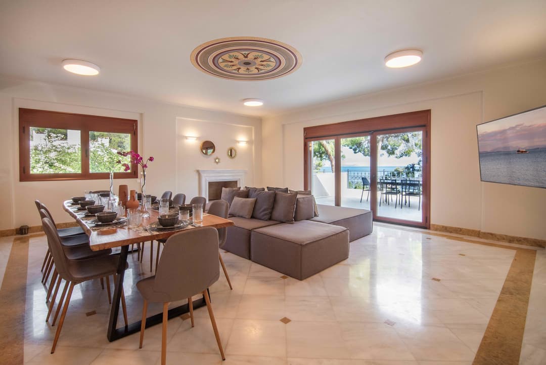 - Элегантная гостиная с выходом на веранду с видом на море