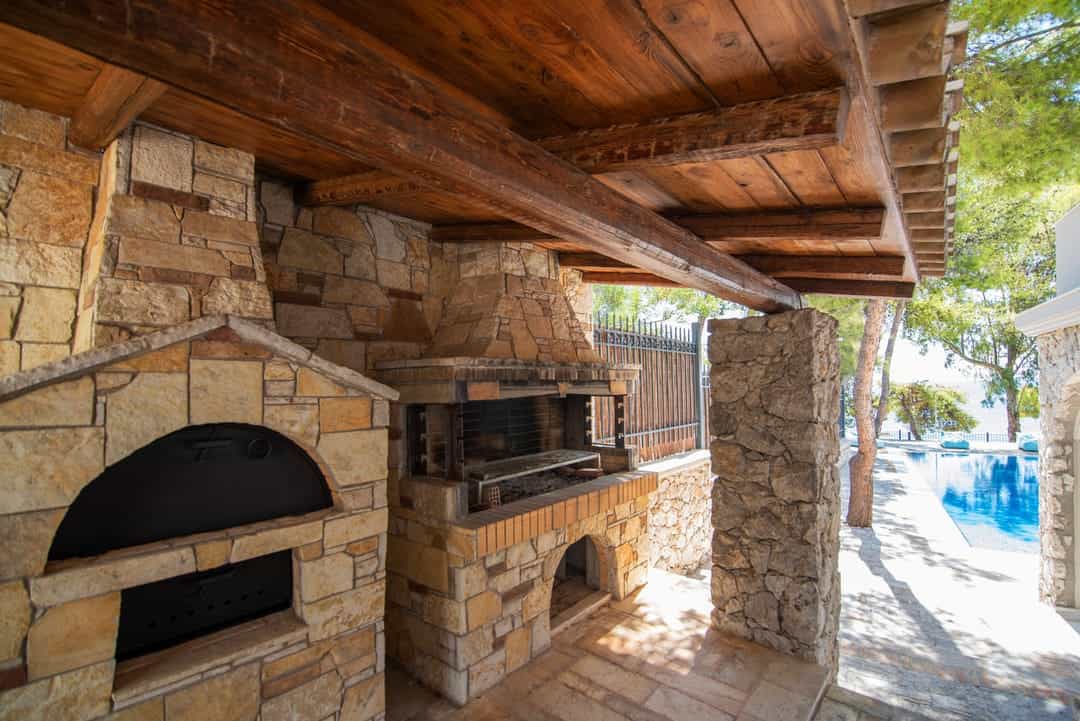 - Зона барбекю с традиционной дровяной печью