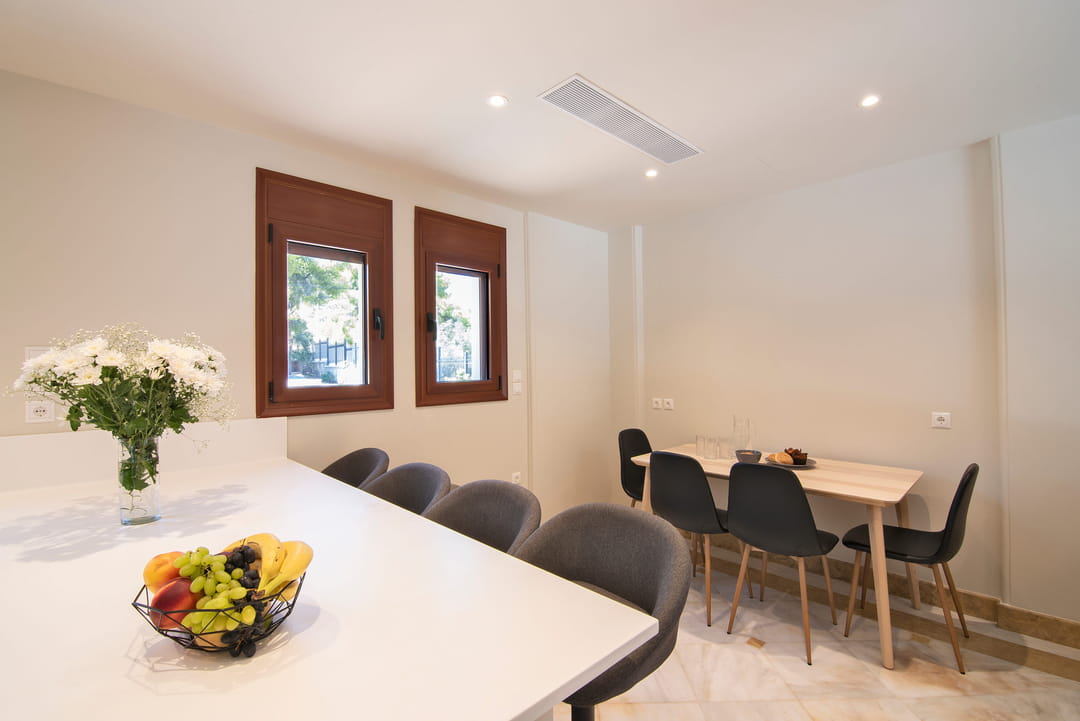 Мы выбрали виллу Флора, которая находится в комплексе с закрытой территорией, со своим пляжем и доступностью к нему в 50 метров. Мы пробыли там месяц и ни разу не пожалели. Для отдыха с детьми прекрасный вариант, есть все необходимое. Огромная ухоженная зеленая территория по всему комплексу. Плюсом было то, что нас разместили с нашим домашним питомцем без проблем, а именно с собакой. Конечно вилла не супер современная, но греческий шарм прослеживается в оформлении и дизайне, то что нам хотелось.