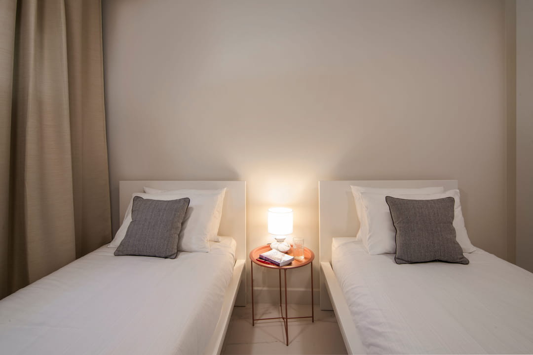 - 2-я спальня:2 односпальные кровати, собственная ванная комната с душем, вид на сад